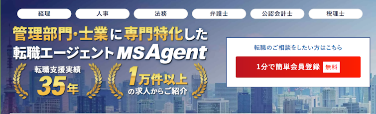 MS-Japanは経理・財務・会計士など管理部門に特化した転職エージェントです。30年以上の実績を持ち、Big4系FASや監査法人、事業会社の管理部門求人を多数扱っています。
