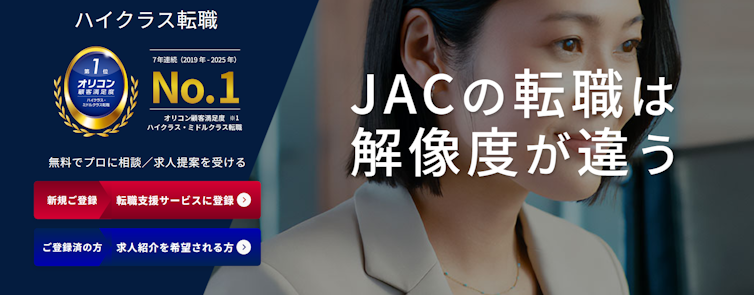 JACリクルートメントはハイクラス・外資系・管理職転職に強い転職エージェントです。管理部門やコンサル、FAS関連の求人を多数保有し、年収800万円以上の案件も豊富に扱っています。