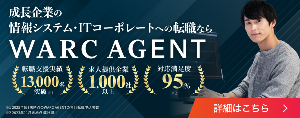 情シスへのキャリアアップを考える方には、IT企業への転職に特化しているWARCエージェントの転職サポートがおすすめです。WARCエージェントは個々の経験とスキルセットに合った転職先を提案するのを得意としています。