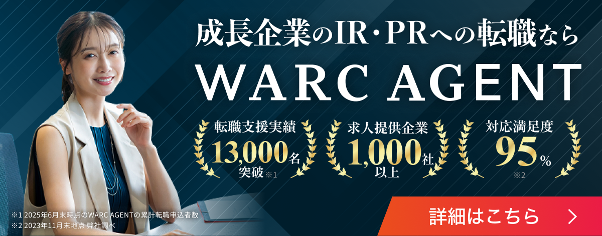 「WARC AGENT」なら、大手上場企業からIPO準備企業のベンチャー求人まで幅広く対応しています。